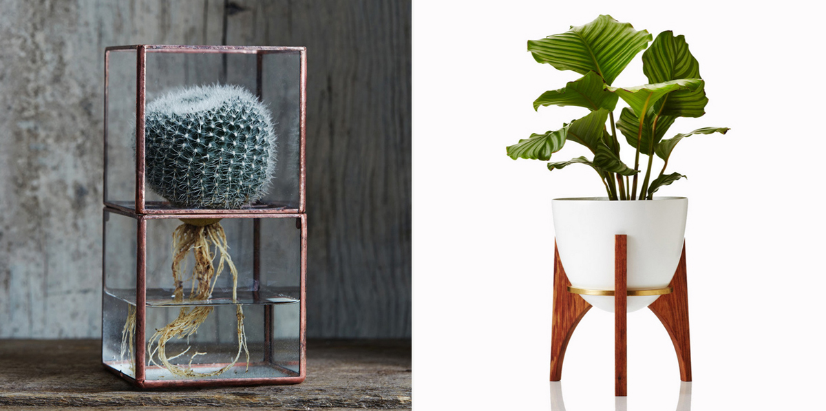These copper-edged glass terrariums ($190) crafted by a designer duo from Ichikawa, Japan exhibit the beauty of the entire plant. With one compartment to hold the water and another to suspend the plant, this unique vase allows you to observe both the succulent and its intricate root system thrive and grow.