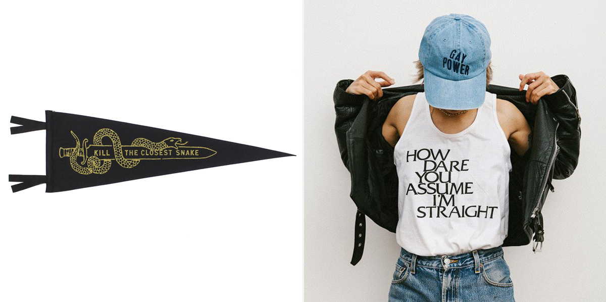 Straight (or perhaps, directly) to the point, this unisex top ($36) is a collaboration between Otherwild and Herstory and is inspired by a tank worn by a participant in Gay Pride Day, NYC back in 1982. The rest of the collection includes a sweet Gay Power denim cap and Dyke enamel pins. Additionally, 10% of all proceeds are donated to the Lesbian Herstory Archives.