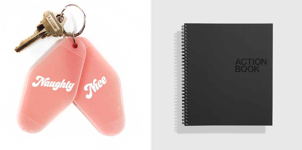 Philadelphia’s Three Potato Four has a wide range of retro hotel-inspired key rings ($8), but this year they have also released a catchy, limited edition style just for the holiday season. Available in white on pink, or red on white, they say “Naughty” on one side and “Nice” on the other. Made in the USA.