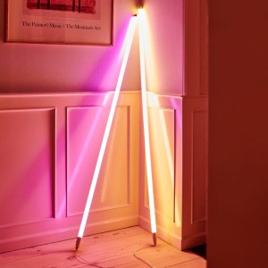 Full of potential, HAY’s neon tube lights ($60) can be hung or leaned against a wall alone or along with others to create a dramatic, moody glow. Available in red, blue, yellow or warm white, each one measures 59.25 inches and features an in-line switch located on the 78.75-inch cable. Each 12-watt LED has an average life span of 6,000 hours—or 250 full days. They can be purchased at independent design shops and MoMA Design Store.