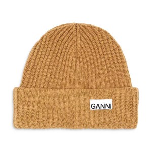 From Danish label GANNI, this rib knit hat ($95) has been crafted from a blend of recycled wool and synthetic polyamide. Made in Italy, the cozy, soft and warm accessory is available in various colors (fawn, black, pale pink or red) and features the brand’s name on a patch. This beanie is also available at Bloomingdales.