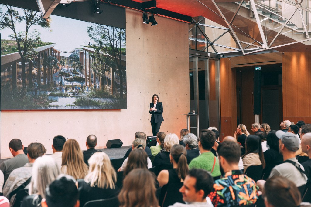 Giulia Frittoli from Bjarke Ingels Group gave a talk called “Social Nature—Designing Cities for People and the Planet,” emphasizing the integration of nature and urban spaces through a deep case study of the firm’s Gelephu Mindfulness City project in Bhutan. Their masterplan for the ground-up creation of a new city embodying Bhutan’s Gross National Happiness index and commitment to remain a carbon-negative country epitomizes the intersection of the report’s remaining three sections: Glocalization, Mindshift Revolution and Co-Society. Glocalization examines how design can bridge the gap between global and local contexts, emphasizing the importance of cultural interpretation in brand design and the creation of products that resonate with local identities while maintaining global relevance. The Mindshift Revolution section explores how design is supporting new approaches to wellbeing through the creation of environments and products that promote mental and physical health, such as ergonomic workplaces and spaces that foster creativity and collaboration, and Co-Society focuses on how design can enhance public spaces and contribute to community well-being.