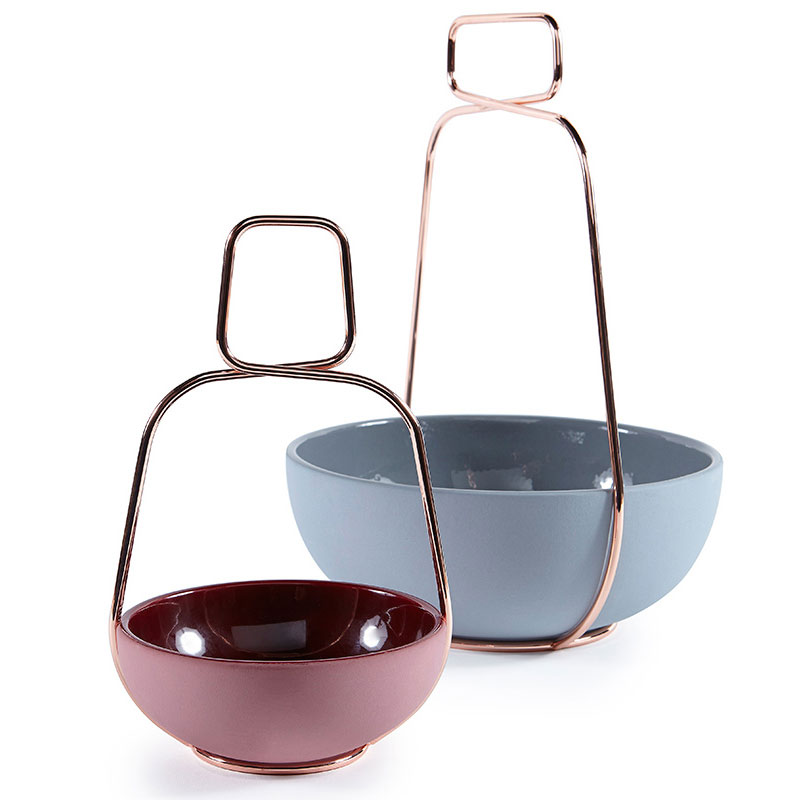 We recently had the opportunity to preview three of Incipit’s debut designs, all of which focus on basic materials (marble, ceramic and copper) and organic shapes. The Muslet series is designed by Ilaria Innocenti and consists of a family of ceramic containers. A copper wire forms the handles, inspired by the cage used to brace a champagne cork.
