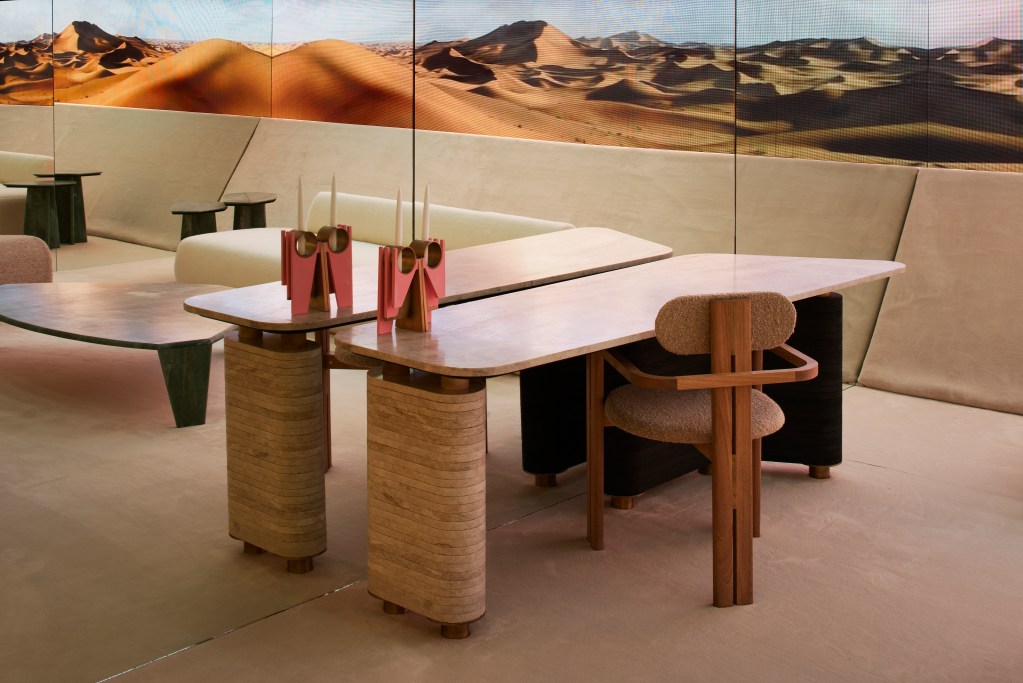 It has always been a collaborative exercise to find materials that go well with our collection. With the meditation chair, we introduced biohack technology. We designed the chair and Resonate introduced the biohack technology that’s inside. The chair emits sound frequency which is connected to headphones. It’s also connected to a lighting program that emits lights. Both of those work in sync to induce different states of mental frequencies. One can put you to sleep. One can put you in a more introspective, meditative mode and one can wake you up. We’re playing with that biohacking technology as part of this whole concept of “Earth 2100.”