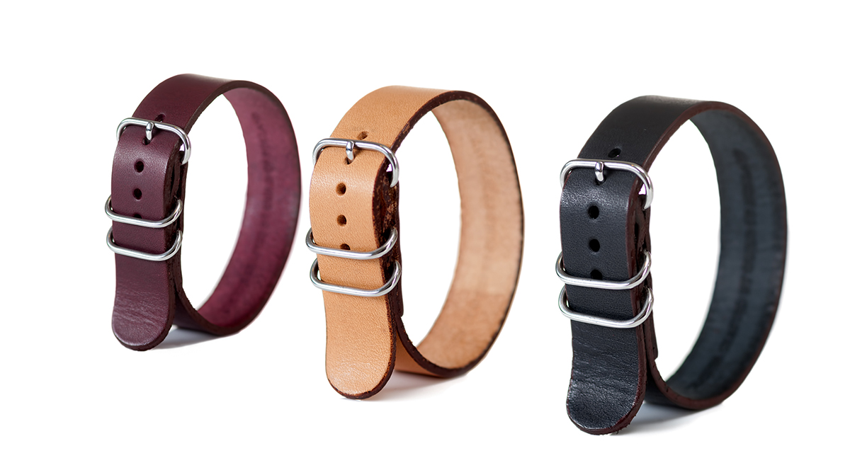 “I faced hurdles on all three fronts: engineering, design, and business,” he continues. “I was expecting it to be easy to find satisfactory leather for making the strap I had in mind. To my dismay, all the samples I was getting did not really convince me. Some were too rough and would be uncomfortable, but if I got to softer leather then it wouldn’t hold up over time and would stretch too much. Other leather I tested would discolor over time and stain. The whole design was based on a single pass or NATO style strap, so I was getting worried I had spent too much time and had not gotten anywhere finding the right leather.” One thing he knew was that some of the best tanneries in the world are in Tuscany, where vegetable tanning is a craft passed down through generations of artisans—and that they were the difficult to contact over the internet. “So I hopped on a plane hoping to find a partner,” he says, resulting in what he thinks “is the best leather in the world.” Umaña then tapped Andrea Monti (of Amsterdam-based atelier Guild of Holland) to make each and every NATO strap.