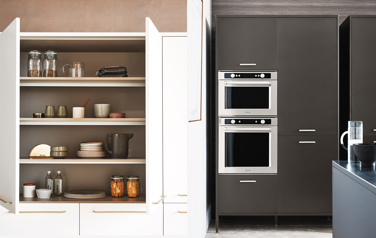 The first project designed entirely by Vicente Garcia and Cinzia Cumini is Unit—a system that wants to shift the idea of a kitchen as a fixed object to that of a concept with free elements. During a recent meeting, Garcia and Cumini told us about their new work, starting with their relationship to both the industrial and the domestic kitchen. “The Bauhaus movement,” Garcia explains, “was a pioneer in defining functions, even for this area of the home. It triggered the basic principles of modularity. Since then, many things have changed, but the kitchen remains a very technical space, even though it’s an emotional and special area. In the last decades the offer from kitchen manufacturers was centered on that—technical and material aspects—but the formal side has been linked mainly to modularity and design of cabinet doors. This happened for so long that sometimes it’s hard to see the differences between kitchens from different manufacturers.”