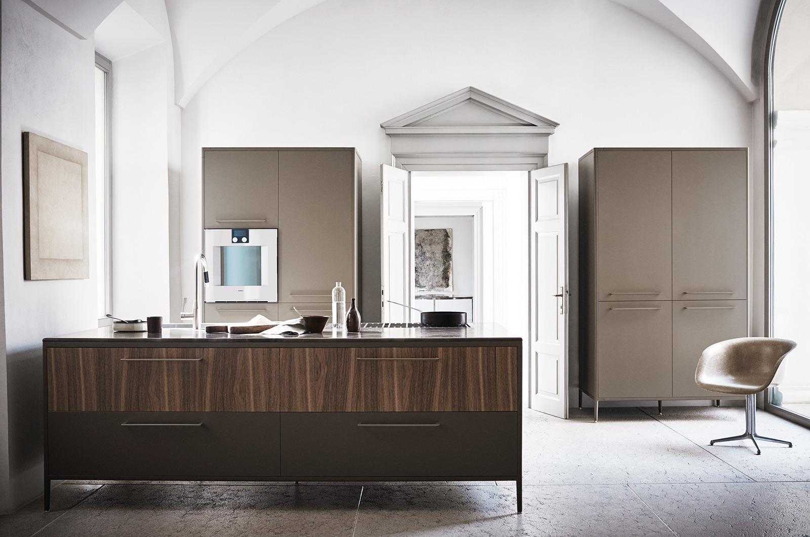 Unit is designed to meet this need. “The objective of Unit is to connect the practicality and ergonomics of the professional kitchen with the humanity of the home kitchen,” Cumini continues. “With our research, we tried to carry the product in a freer design dimension, where the kitchen becomes a single object—such as a table or chair, and no longer an object tied to the size of one single space, or a space designed to measure from wall to wall.”