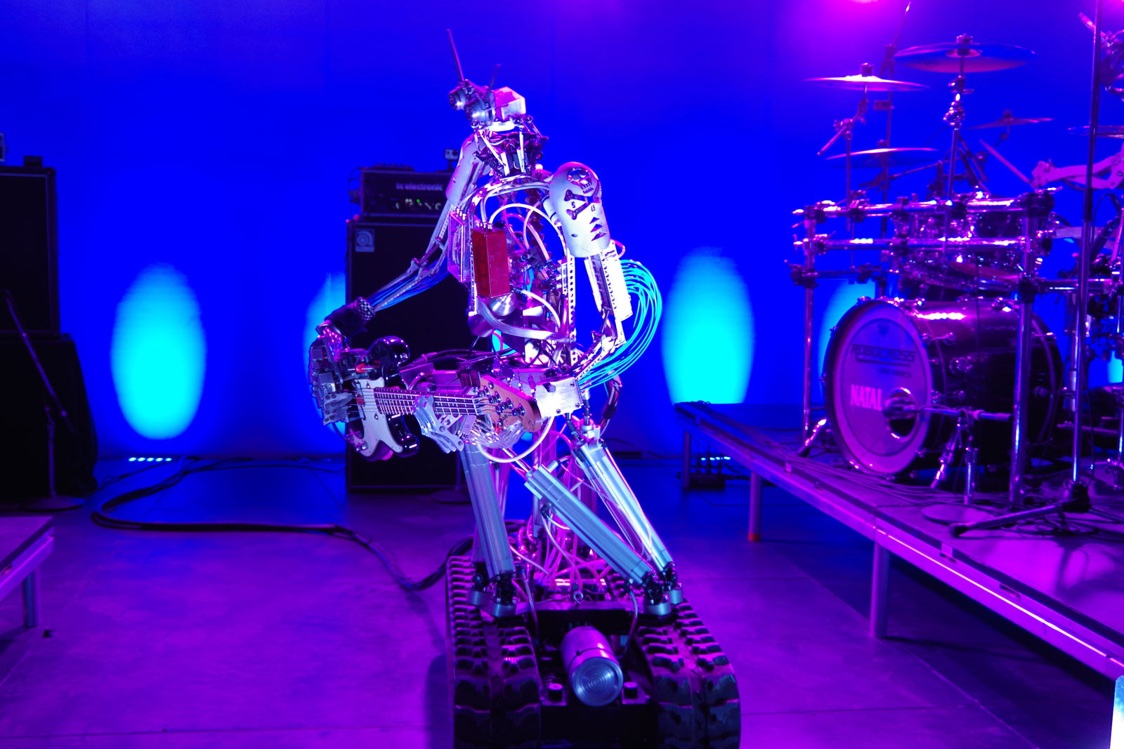 The event also presented two featured performances. The first, held in a garage-like setting, was a three-member robot band known as Compressorhead. The group is already YouTube famous and will attempt to crowd-fund an album in five days. These robots play real instruments, and are programmed to do so with fervor. They played a lot of hits though often changed up the tempo to keep it unique. The only thing more fascinating than watching them shred their respective instruments was the fact there were, on occasion, slight human-like errors. After all, that’s the benefit of a live show: it’s real.
