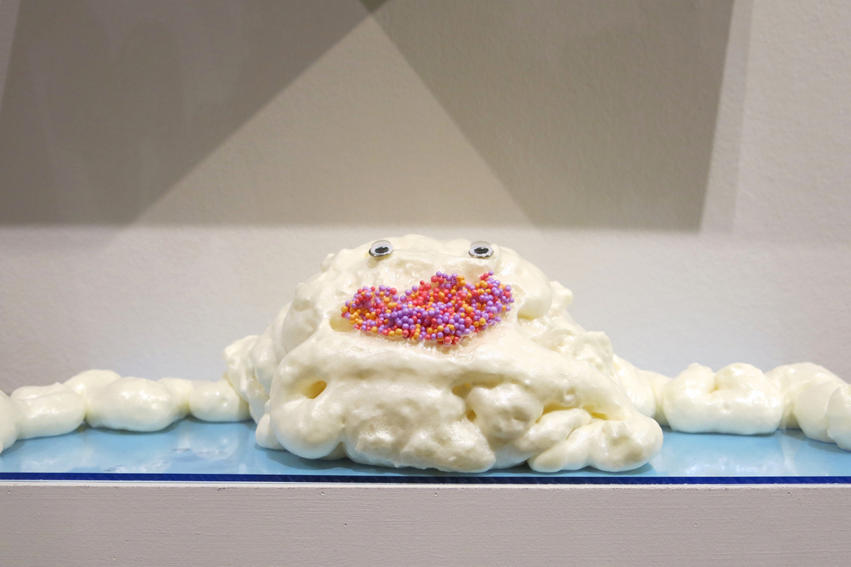 Made from a secret industrial material of the artist’s own formulation, US-based animator, illustrator and game designer Julian Glander’s 3D “floam” sculptures look like oversized, colorful pieces of candy. It’s a step out of the digital realm for the artist, but the tactile sculptures definitely have an internet-friendly feel; resembling slightly lopsided, confused emoji come to life.