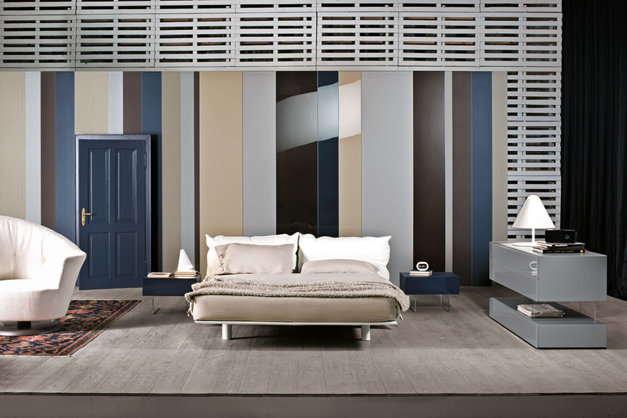 The two companies meld their shared foundations of family entrepreneurial tradition to collaborate on the illusionistic decor, which features reflections from wrought iron railings, ornamental window sills, balconies, terraces and imaginary curtains tossing imaginary shadows across the non-woven fabric. Some of the designs also recall some iconic LAGO modular furniture, like the N.O.W wardrobe.