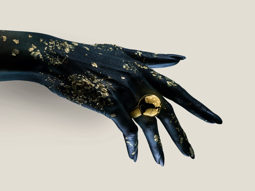 Made with Vantablack (the pigment so dark, it traps 99.96% of incoming light), meteorite and gold-plated microcircuitry, LUCY is much more than any other super-polished, sphere-shaped ring. Each ring is connected to its wearer’s own white dwarf star and vibrates when that star reaches its zenith. The “magical ceremony” (happening multiple times a week) encourages the wearer to pause, center and reconnect with the space around them. Thanks to the subtle vibrations and pulsing olivine crystals (etched from Pallasite Meteorite) embedded in the 18-carat gold, the wearer gets transported to somewhere truly unique—a space and time only for them.