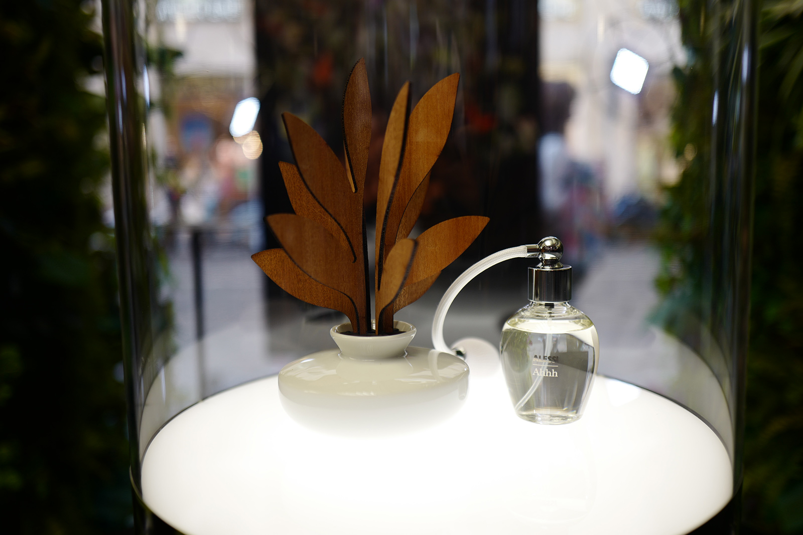 Before addressing the aromas’ specifics, it’s worth talking about the objects themselves. “Why would you not try to have a new look at something we know so well?” Wanders answers when asked about reinventing oil diffusers—something they did drastically by mimicking a plant. “We like to look at archetypes in various ways and show people they can be done differently. We have designed less of an abstract grouping of sticks and given it a functional, leafed-out language capable of spreading scent.” The leaves of the diffuser are layered and oriented in various directions allowing for greater diffusion. “I live in a culture that allows me to pick up a pencil and draw things to make a living,” Wanders adds. “The least I can do is take full responsibility and do whatever I can to fulfill a dream that life can be more interesting and exciting for everyone.”