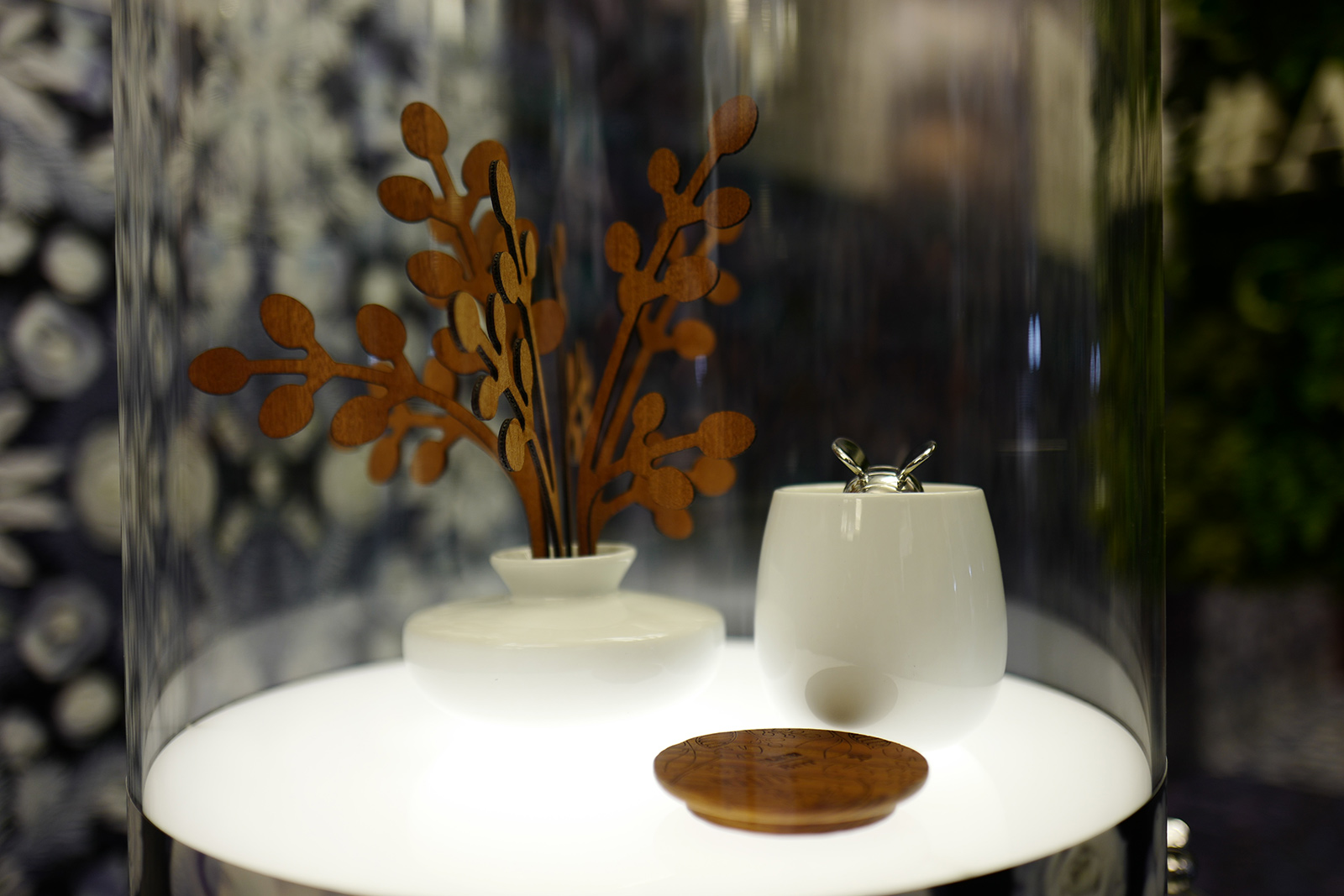 Gabriele Chiave, Creative Director for Marcel Wanders, explains that such a unique series of scents was drawn from an uncommon process: “We started by creating these fragrances visually. We made mood boards of everything we could imagine as to how someone could see a perfume—text, characters and structures.” This, he notes, is “how we were able to see what we wanted to smell.” Thematically, they began to approach a more expansive version of the four seasons, urged on by Alberto Alessi’s desire to bring the scents of nature into the home. “We added a fifth season to be a cosmic unifier. It embraces life, the spirit and so on,” he adds. As they began to shape the objects which would hold and distribute these fragrances, they also collaborated with a perfumer in the French city of Grasse—a destination most know as the capital of scent. Notes were plucked, trialled and volleyed between all parties.