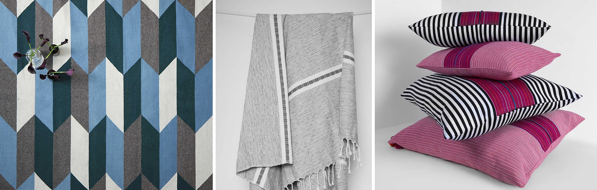 Colorindio is a shining example of how to infuse time-honored, indigenous handicrafts with modern taste. On a mission to “weave stories of ancient cultures through fabric,” the two women behind Colorindio track down preeminent artisans from Chiapas and Oaxaca to bring their biannual collections to life. The blankets are soft and simple, with colorful hand-stitched accents, while the thick rugs—which can take nine days to produce—are flawless but reflect a pedal-looming process.
