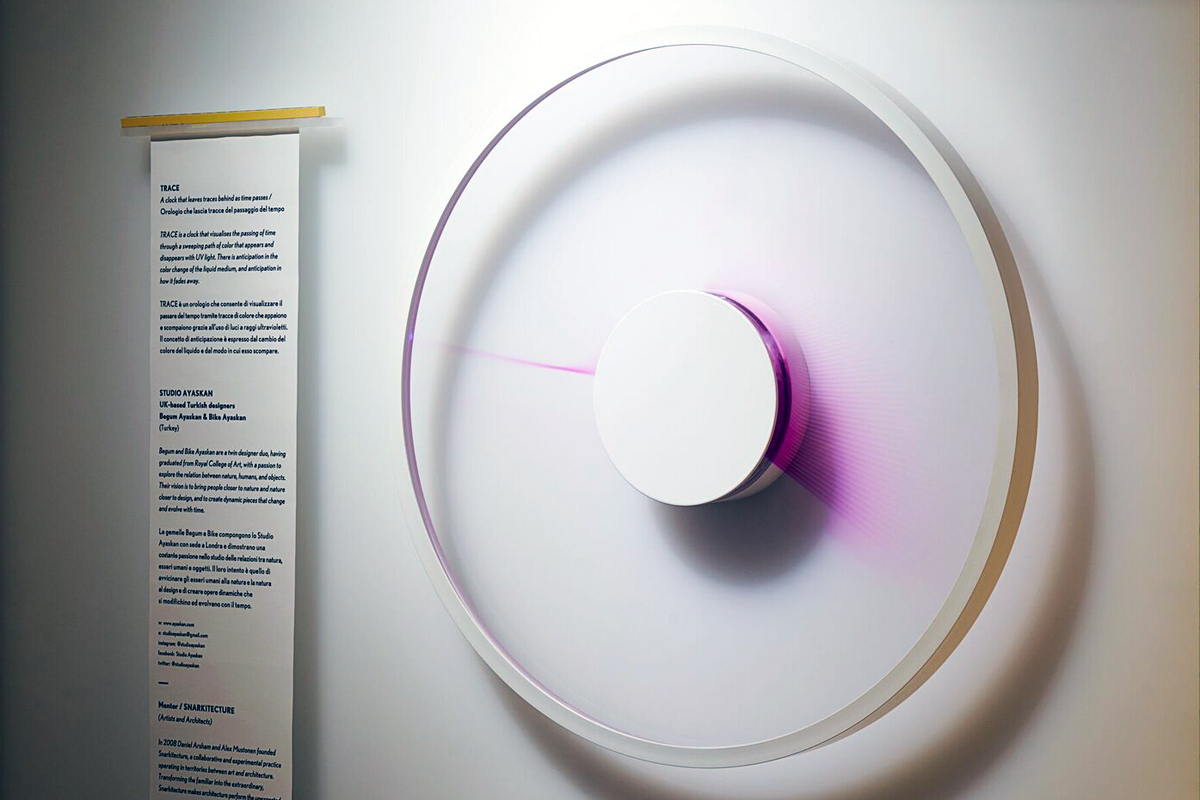 Twin sisters Begum and Bike Ayaskan started London-based STUDIO AYASKAN after they graduated from the Royal College of Art, where they specialize in product design and installations. They told us that their bond as sisters (as well as designers) works so well because they inherently understand one another. TRACE, the product they submitted for the Lexus Design Award, looks simple but is actually quite complex. The duo collects interesting materials, and had been inspired by some photochromic liquid but weren’t quite sure what to do with it. Eventually they realized that light from a laser produced really interesting effects upon hitting the liquid, and they began experimenting. That work eventually led them to develop the TRACE timepiece, which notes the time by leaving a trail of color. “We were thinking about this photochromic solution that we had and how we could make a conceptual piece based on the anticipation of time… Anticipation seems to be about the future, but it’s very much about the present too. We wanted to emphasize this fact.” Proving that design and technology can be perfectly poetic, they tell us, “In a way, instead of designing something for the future, we wanted people to be inspired to design their own future.” They really enjoyed their mentors, CH friends Snarkitecture, who encouraged them to play with scale and the dichotomy between the product’s simple appearance and complex construction.