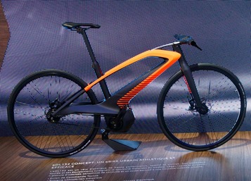 Peugeot went beyond the automobile for its concept vehicles, also including three two-wheeled explorations. The eDL 132 is powered by a hidden battery and is modeled after classic urban commuters while the eDL 122 is a compact city bike complete with a briefcase cargo hold and front wheel-mounted electric motor. A sister design to the Onyx, Peugeot also presented the Onyx bicycle concept, which ditches motors altogether for a velodrome-ready racing bike.