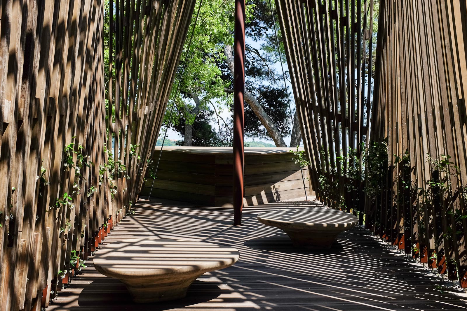 The Giardini may act as the main venue for national pavilions, but many are also scattered around Venice, in old palazzos or in unusual locations. The latter is the case for the first-ever participation of the Holy See at the Architecture Biennale, whose installation takes place on the beautiful island of San Giorgio Maggiore, just in front of Piazza San Marco. The “Vatican Chapels” is an event not to be missed. Ten tiny new churches were built in the woods behind San Giorgio church and next to Fondazione Giorgio Cini—each entirely different from the next.