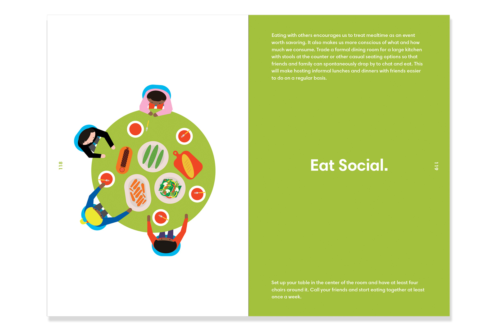 All of the Bruce Mau Designs illustrations seek to create access points. “We wanted to make a sense that the book is not mathematic, but has multiple points of inspiration. People can be inspired and read chapter after chapter or pick one page a week. This means the visuals are very important.” It’s their collaborative hope that this book rests on a coffee table and will continue to be flipped through. Not all of the concepts will be applicable to everyone, but the breadth of the research and the directness of its distillation grant plenty of goals for short- and long-term impact.