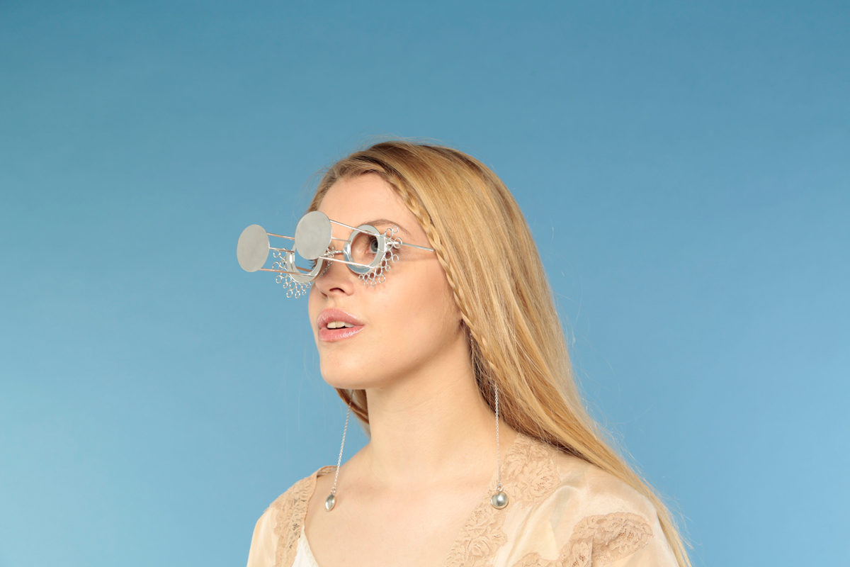India Mee’s pieces stood out among the many necklaces, bracelets and rings in New Designers’ jewelry and metalwork section. Her fun, unusual glasses, called “A Psychedelic Vision in a Concrete Metropolis,” have a flower-child vibe and contain a kaleidoscopic lens that fractures the user’s vision into much smaller pieces, for an alternate view of reality. The elaborate design and delicate details made the glasses look highly accomplished, and her collection also contains slightly more subdued rings, a necklace, and even a pair of kaleidoscope binoculars.