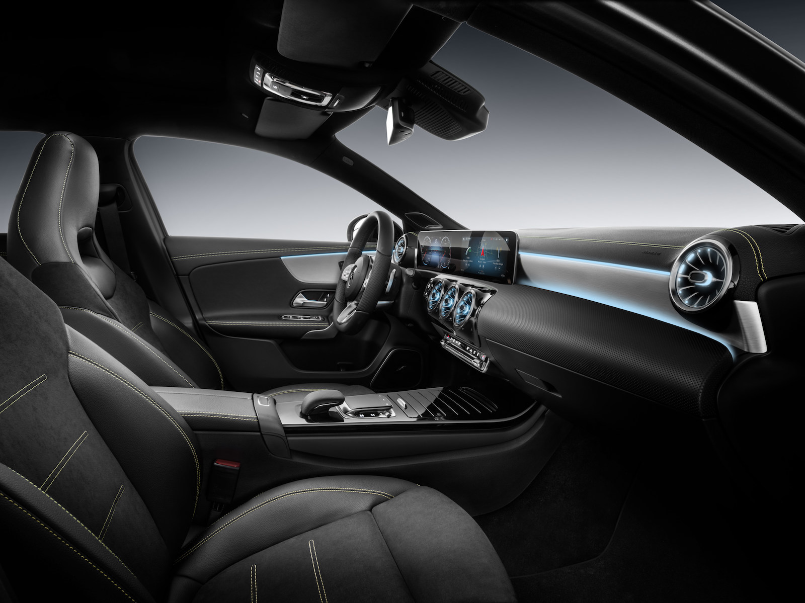 While the exterior design of the new A-Class is an exercise in evolving the car’s refinement without reducing its sportiness, the interior design is more revolution than evolution. MBUX learns your behavior and presents a home-screen of “suggestions” based on the relationship between your usage contextually relevant factors. In other words, if you always call your best friend during the Wednesday evening commute, then on Wednesday when you get out of work and in to the car, a shortcut to that phone call is the first thing you see. Factors like time, day, location and more will reorganize the suggestions for calls, entertainment and navigation. Meanwhile, all of this is on a giant widescreen like we’ve seen in the high-end S and E classes for a while now. But in the A, the screen is no longer set under an old-school overhang originally designed to shade instrument dials—it’s free-standing in the dash, which is low and symmetrical, evenly spanning the full width of the car and offering a bigger and brighter view of the world outside. Other interior features like climate-controlled and massage-enabled seats narrow the gap between the brand’s highest and lowest end vehicles.
