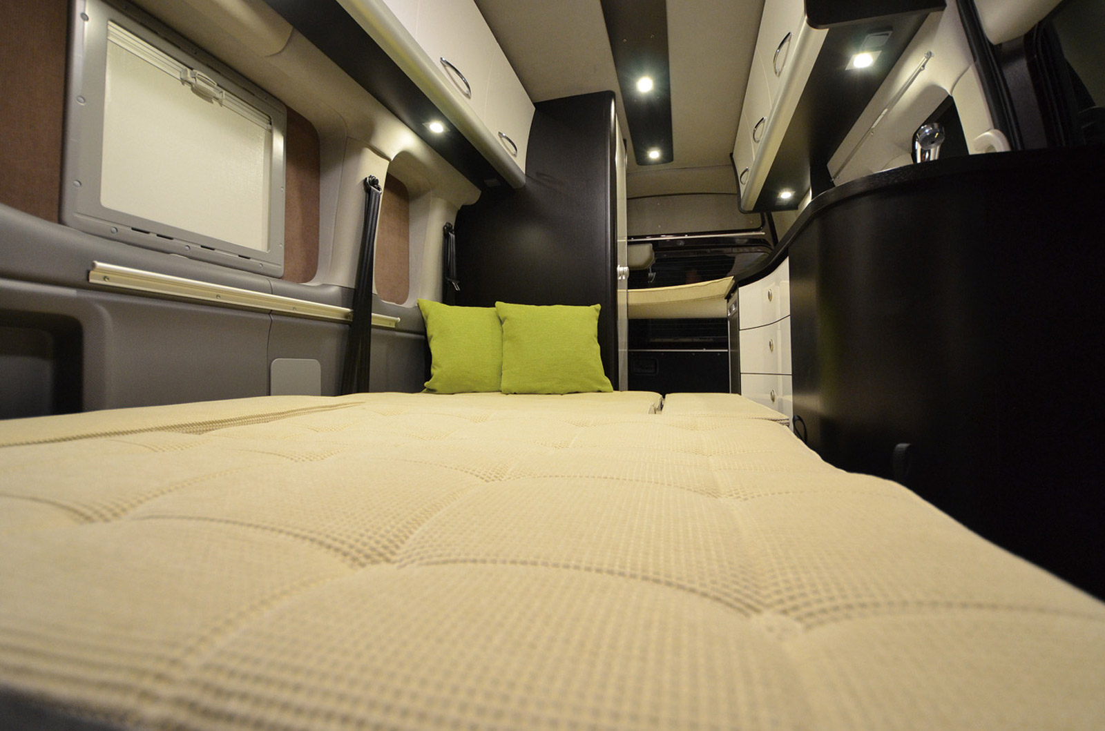 I have an NV350 [a Japan-market van that’s about three feet shorter than the US-market NV 2500 cargo van]. We modified it to carry bikes, camping equipment. With my son we enjoy climbing mountains, or fishing or cycling, so those kind of things are in my car, and food, maybe for five/six days, a refrigerator, and so on. We made sure there are shades for privacy, we have a generator for electricity and heat.