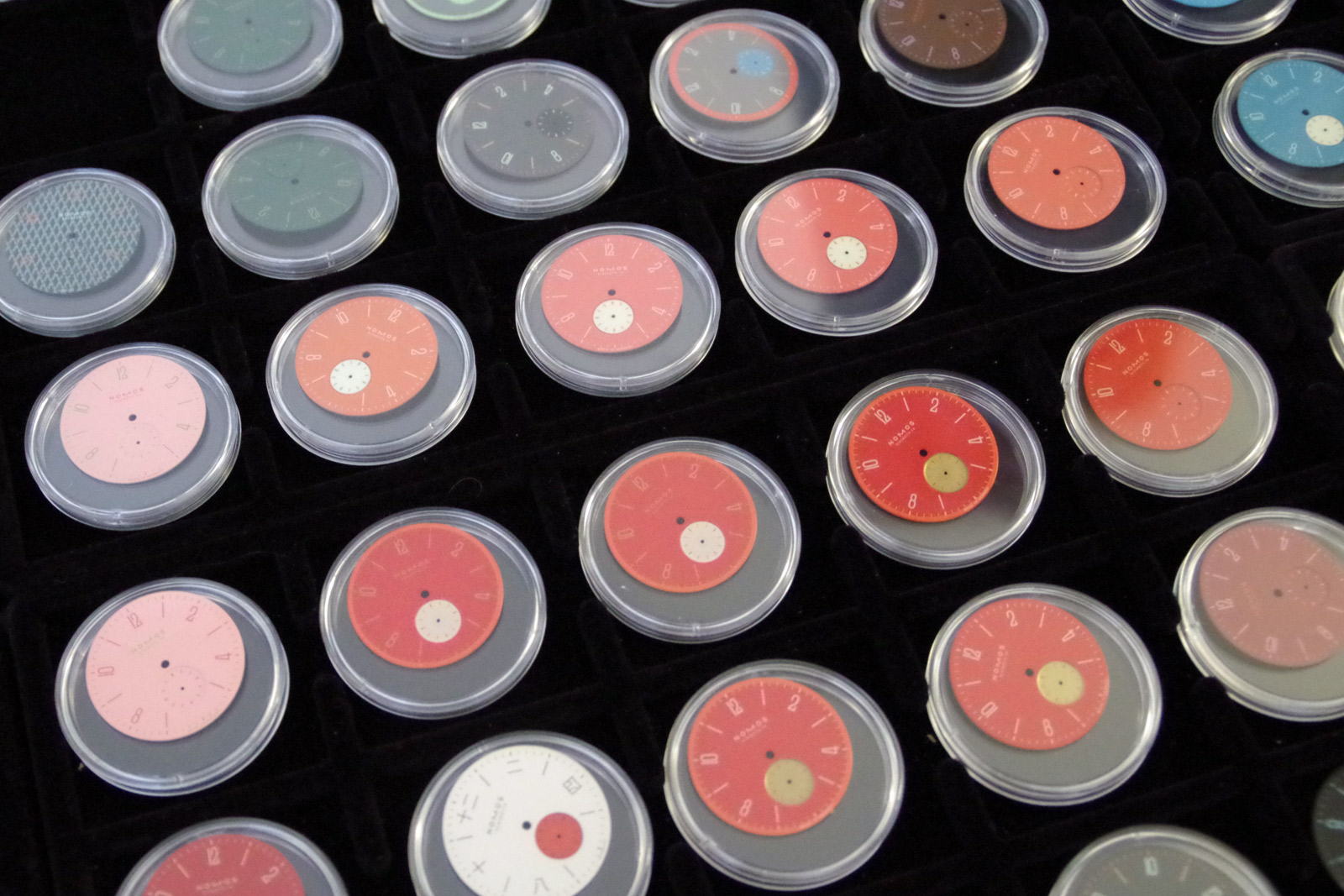 In an industry where a half-millimeter matters—or a sharper curve, heavier lug or a degree of color—Berlinerblau represents Nomos’ commitment to design. As they make clear, however, “Design is very important to the brand, but so is caliber and mechanics.” The internal components undeniably impact the structural language of each piece. But one of the most telling portions of Berlinerblau happens to be a wall unit with drawer upon drawer of watch faces. In search of perfection, the design team produces face after face with slight variation in color, font and font sizing. Indicators vary slightly. And the design team is quick to point out the final product in each drawer. One small tweak begets a substantially different end result. Here, these drawers are used as reference points—designers can simply rise from their desks and look back at what worked—and what didn’t.