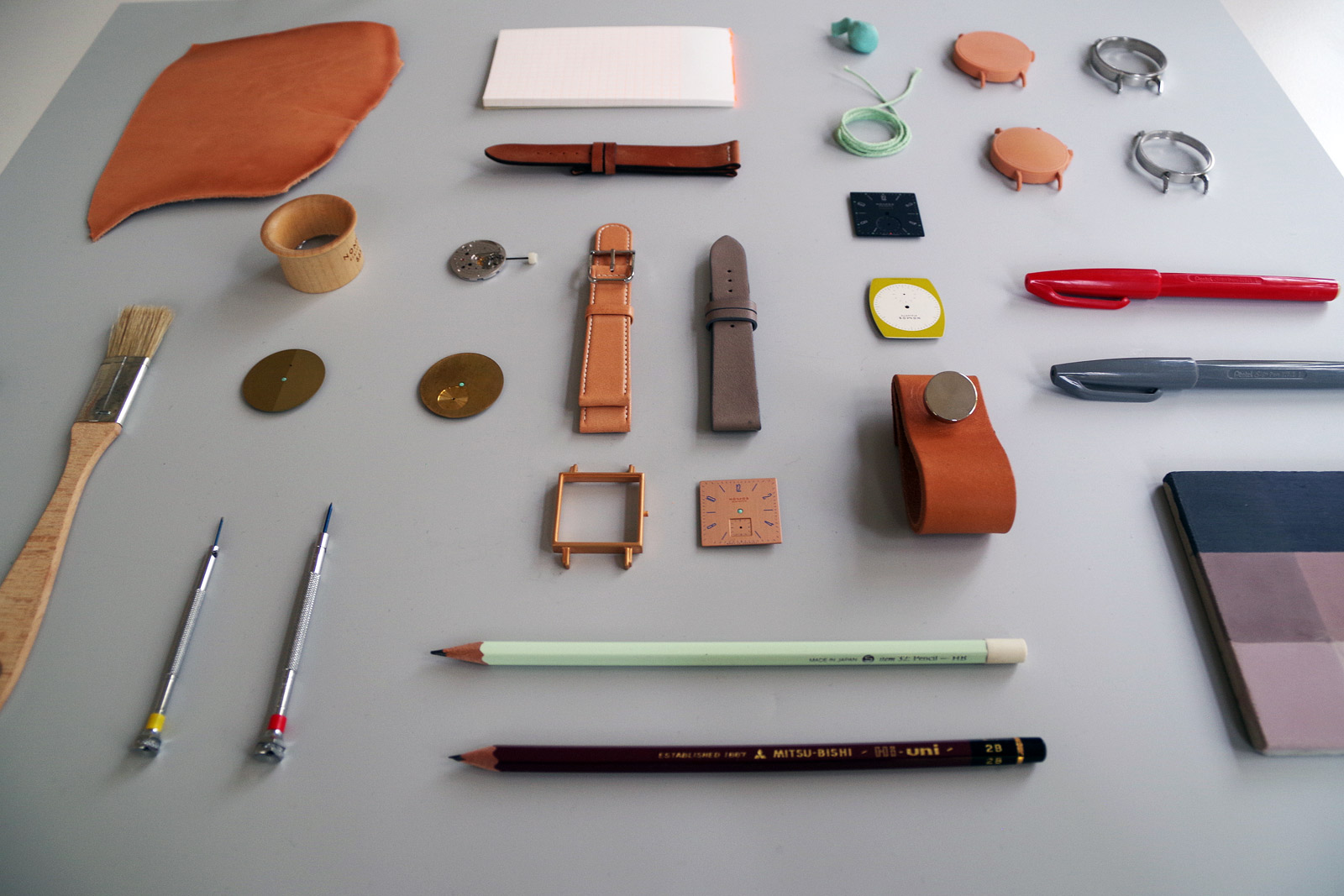 From a color swatch Tetra poster to 3D mood boards, inspiration can be found in every corner. Regarding the latter, there’s an intention to convey the essence of future watches, from leather to metal and more. Watches in different stages of production linger just about everywhere. As with most creative studios around the globe, people are not afraid to stand up, seek something out or ask a question. It’s definitely possible that this atmosphere also weighs upon the playfulness of Nomos’ design.