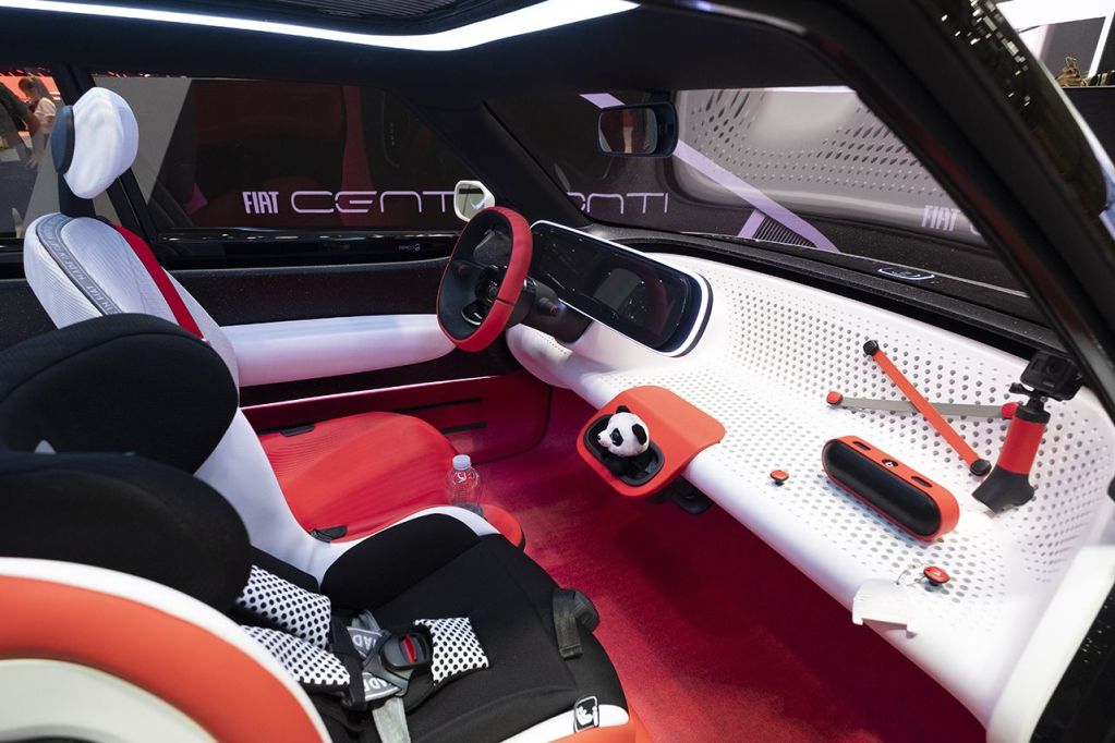 There’s innovation in the car’s electrification, too. Fiat is working with Samsung on the unique approach, with battery modules each capable of driving around 100 km; the car can fit up to four modules, and customers can choose and pay for the distance they need. Delillo adds, “We were inspired by electric scooters and the ability to easily change batteries, so there’s room under the seat for an extra battery that you can swap easily from a recharging station,” providing even more range or for use as a back-up battery.