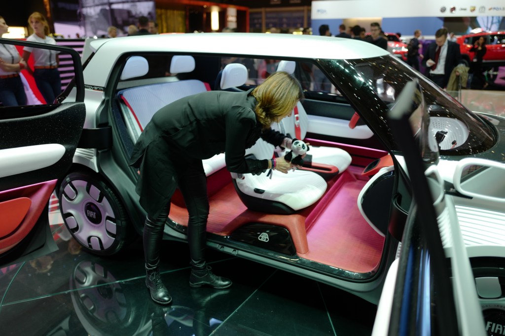 Celebrating the brand’s 120th anniversary and its first concept car in 16 years, Fiat unveiled the electric Concept Centoventi (Concept 120) at the Geneva International Motor Show this week. The vehicle, the next-generation Panda, could arrive as early as 2021. Klaus Busse, the head of design for Europe brands at FCA, says, “It is Italian design”—democratic, accessible, stylish and functional. The car will be delivered with a very basic package that owners will then customize using Fiat’s 4U program, choosing roofs, bumpers, wheel-covers and external wrappings, seating, storage and display options. Most will be easily accessible and can be ordered online and easily installed at home or at the dealer. The result is a vehicle that’s inherently forward-thinking—it’s 100% electric and will have an estimated range of 400+ km. We toured the car with its three top designers: Alberto Dilillo, head of exterior design; Andreas Wuppinger, head of interior design; and Rossella Guasco, head of color and trim.