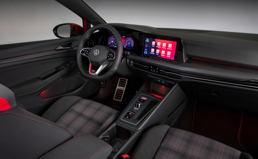 One bit of history Volkswagen has preserved are the standard plaid seating surfaces inside the car. While you can get sport leather seats instead, cloth has been the way to go with the GTI since the 1980s and we’re happy to see that even as the car looks more aggressive outside, Volkswagen has maintained comfortable, classic material. They’ve also reverted to a perforated steering wheel (with integrated digital functions), referencing the sporty VW way back to the ’70s.
