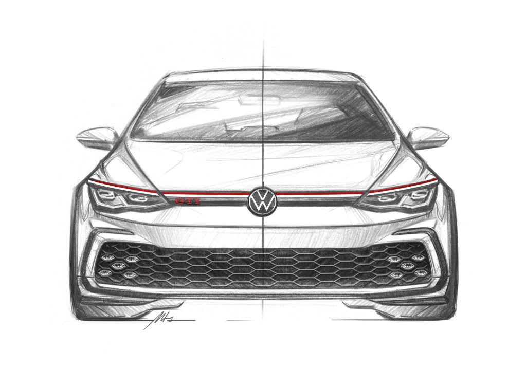 Come 2022, the base Volkswagen Golf will, sadly, no longer be sold in the USA. While this is a design story about the 2022 Golf GTI, it’s important to understand that the Golf—which has been available in the USA since the 1970s—won’t be available in this part of the world because when Americans purchase hatchbacks they prefer aggressive hatchbacks rather than basic ones. The good news is we will be able to buy the 2022 GTI when it goes on sale late next year and it will come with a familiar turbocharged 2.0-liter engine, now producing 241 horsepower—that’s 13 more than what’s on offer today. Plus, it will be available as a stick or a seven-speed dual-clutch automatic. It will be more technically capable with a redesigned suspension with multiple settings, from pliant to racer rigid. Even though this car still looks like a Golf, every body panel is entirely new and subtly reworked, and it is visually signaled.