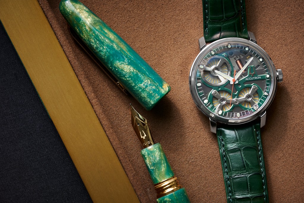 Accutron has always been more than just a watch brand; it extends to broader popular culture and represents a lifestyle. To support their relaunch, Accutron collaborated with several brands of equal stature for premier product launches. From a shimmering, space-age Esterbrook Pen to a single barrel craft rye release by Hudson Whiskey and the handsome hardcover book Accutron: From The Space Age to The Digital Age published by Assouline, these partnerships underscore Accutron’s story. Further, the brand’s The Accutron Show podcast continues to explore stories of innovation in America.