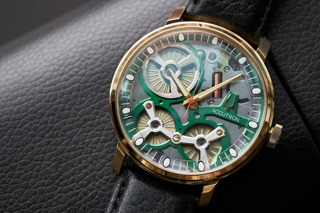 “How does it work, what purpose does this movement serve and why am I excited about what I’m seeing?” Callamaras continues. “The new electrostatic movement begs these questions…. as did the tuning fork, and as did the mechanical movement to those who first saw those technologies. With Accutron, it seems that every piece has purpose in design form and function. Every screw, train, bridge and motor need to stand alone and simultaneously together with all of the other components as did the tuning fork. In short: It was made with the same passion and delivers the same emotions!”