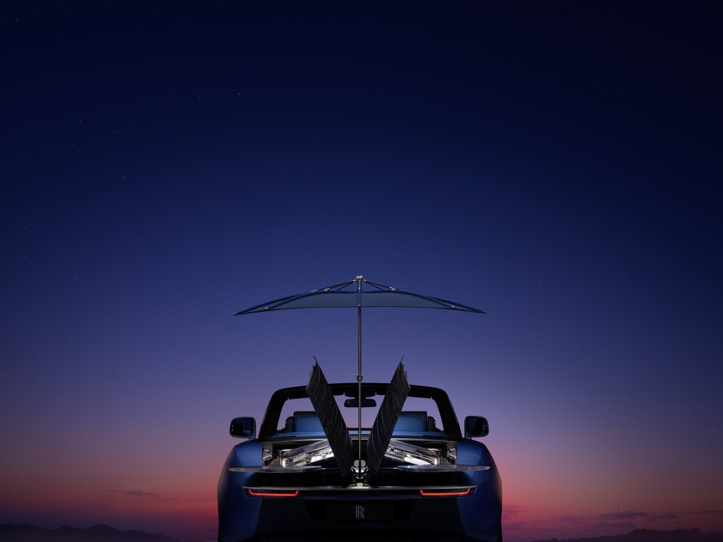 A custom-designed parasol pops up overhead, too, a detail Alex Innes, Head of Design for Coachbuild, is particularly proud of. “I never thought I’d find myself designing a parasol, but such is the beauty of working for our mark. You can stand close to it, and when deployed it doesn’t in any way impede on position or proximity to it. It almost flowers in terms of the way that it deploys; it is exquisitely detailed and has carbon fiber stays and beautiful polished aluminium telescopic assembly.” Of course, this will only appear in these three Boat Tails, so don’t phone up your dealer thinking you can order one.