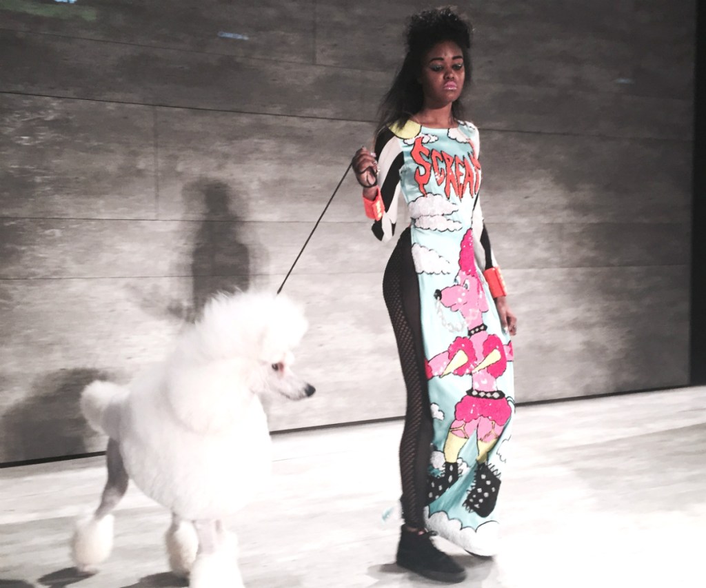 Writer Karley Sciortino attended this season’s Chromat runway show and shot a striking image of a latex ensemble. Sciortino observes, “Chromat is one of New York’s most exciting young labels. Their futuristic latex designs add power to the standard sexiness of everyday lingerie. I applaud any designer who celebrates size diversity on the runway.” CH’s David Graver spied one of the season’s most interesting accessories at VFILES. “The entire presentation exceeded expectations,” he says. “But when you’re at a runway show and a giant dog starts strolling along with the models, a new level of excitement and curiosity arises.”