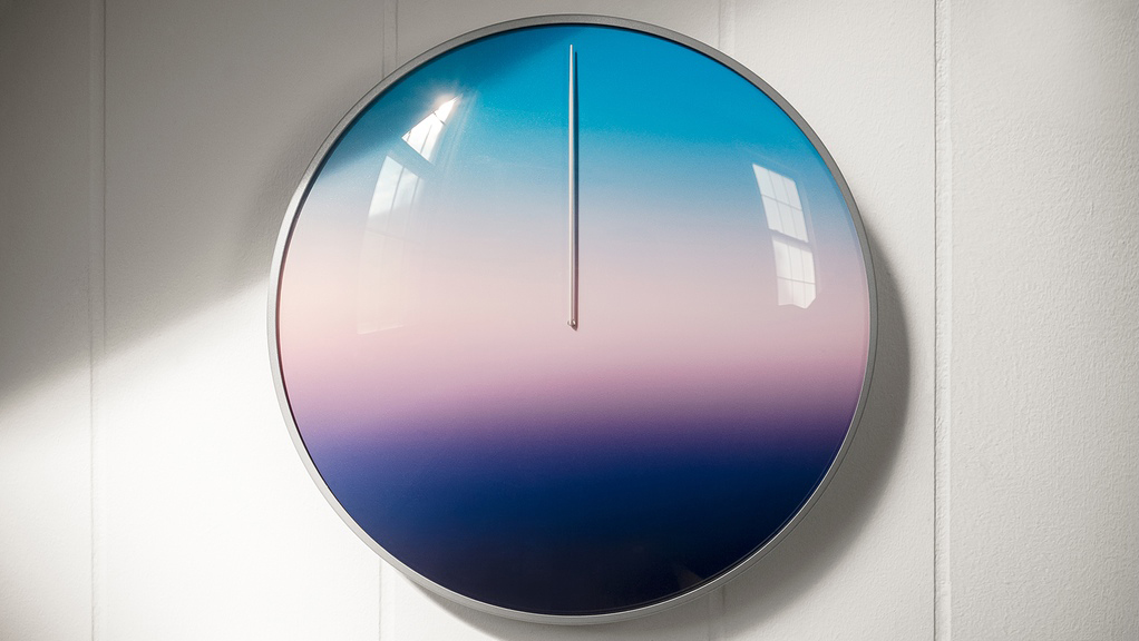 Designer Scott Thrift has been reimagining the way we convey and perceive time for years now. In 2012, he released ThePresent: a wall clock with a colorwheel face that represents all 365 days of the year. ThePresent’s dial reflects the changing seasons and its message was clear: be patient, we are still moving forward. It won many fans (we use it at CH HQ) but Thrift hasn’t stopped there. His latest invention, the Today Clock, employs a similar mentality and design sensibility. This 24-hour timepiece divides a day by the amount of brightness associated with certain hours, all of which is conveyed by varying degrees of the color blue on a carefully considered spectral gradient. Noon, midnight, 6AM and 6PM are all self-evident. Everything between can be interpreted simply as day or night. This is an intuitive clock that focuses on the day as a whole—minimizing the anxiety associated with the tick tock of seconds and minutes. While it might not get people to meetings on time, most people rely on phones for that. This is an item that shows the passing of time can be beautiful, rather than oppressive or distressing.
