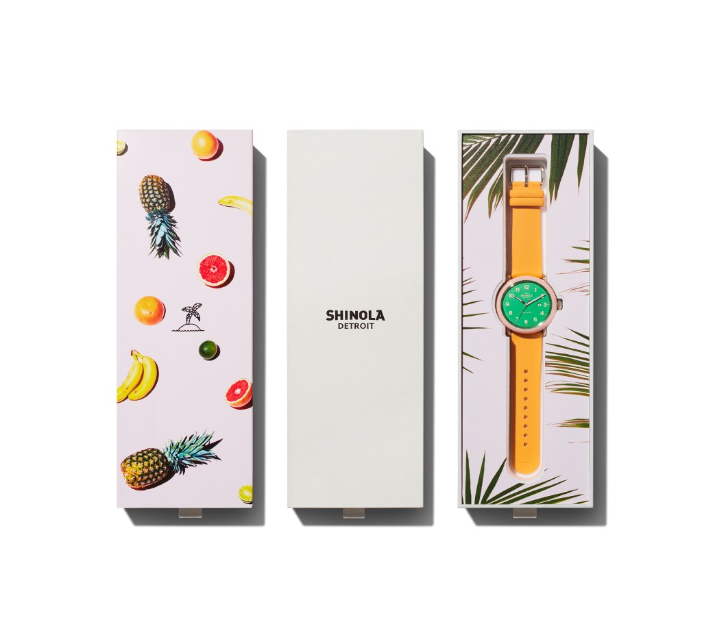 Shinola‘s new Detrola collection successfully indulges the brand’s playful side. From bright, charismatic colorways to premium but sometimes unexpected materials, the seven-piece series comprises modern, personality-driven watches. Inside, the timepieces feature a Detroit-built Argonite 705 Quartz movement (visible through the exposition caseback on some models). Outside, a high-grade TR90 resin case pairs with K1 scratch-resistant mineral crystal and flexible silicone straps. The latter is lightweight, durable and offers quick-release functionality. Thus, the watches fit most circumstances and can be dressed up or down.