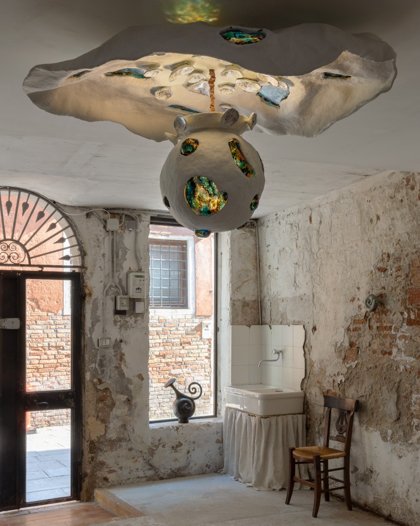 Rome-based American artist F Taylor Colantonio‘s “Frutti di Mare” exhibition—presented by a COOL HUNTING favorite design organization, Object & Thing, founded by Abby Bangser and known for opening in extraordinary spaces—sets eye-catching sculptural works within an old Venetian mirror workshop. For this first solo exhibition from Colantonio, some pieces employ patinated bronze, others embed swirls of colorful glass—and some are crafted from polished cartapesta, which visually nods to marble and terrazzo (and feels similar to the touch) but is actually produced from paper. “Frutti di Mare” will run through 23 June.