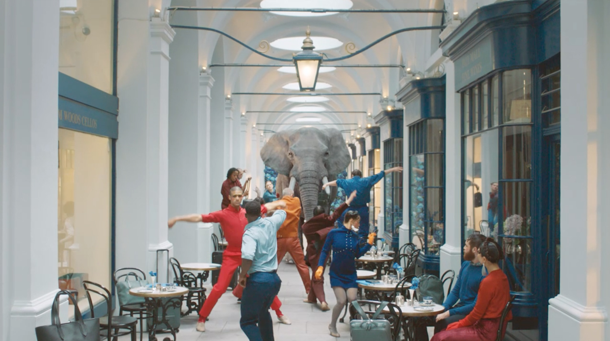 Honestly, the first thing I saw was an elephant walking down Regent St, throwing luggage at people and disrupting the work day! I don’t even know why I had that thought, but I liked this idea of worlds colliding and then my producer told me I couldn’t shut down Regent Street and there was only one elephant-actor in Germany and I don’t think the elephant wanted to shut down Regent Street… So I had to rethink the idea.