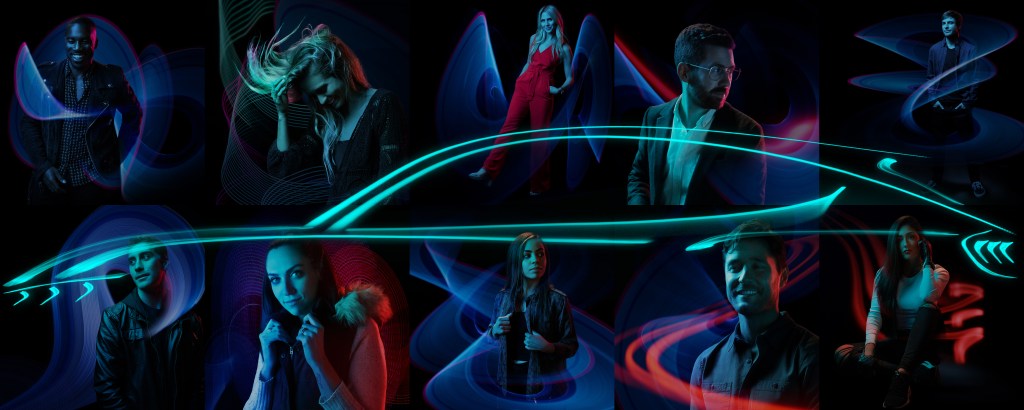Through neon-embellished images, each portrait contributes to the car’s silhouette—which appear as artistic streaks from photo to photo but cleverly share the SUV’s key lines when you assemble the 10 images. The campaign was created by BBDO‘s Detroit office, and photography is by Andrew White and the light graffiti by Peter Medlicott (aka SOLO).