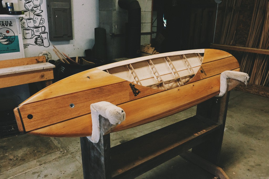 After all the proper holes are drilled, vents are placed, and hardware is installed, the boards receive a final coat or two of epoxy, and are then baked to glassy perfection. For regular boards, the process is nearly identical, only the wood is sourced locally and is stored in an on-site lumber shed. (And they don’t have to bake the whisky out of it.) After the boards are complete, they’re packaged up and sent to their new homes.