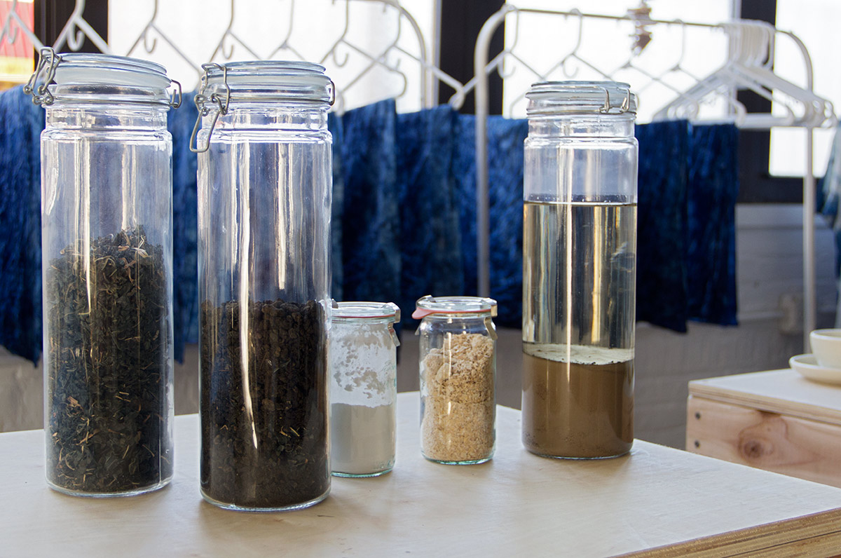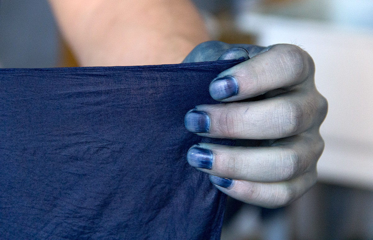 Watanabe is, in fact, a former “salaryman” (the Japanese nickname for someone who works in an office) who changed gears after taking an indigo dyeing workshop in Japan. It’s the reason why BUAISOU hosts weekly introductory workshops—which took place in director (and helpful translator) Sayaka Toyama’s Bushwick living room until they moved into a studio space earlier this April. There’s no better way to appreciate the living beauty of indigo than by plunging your arms deep into the dark abyss.
