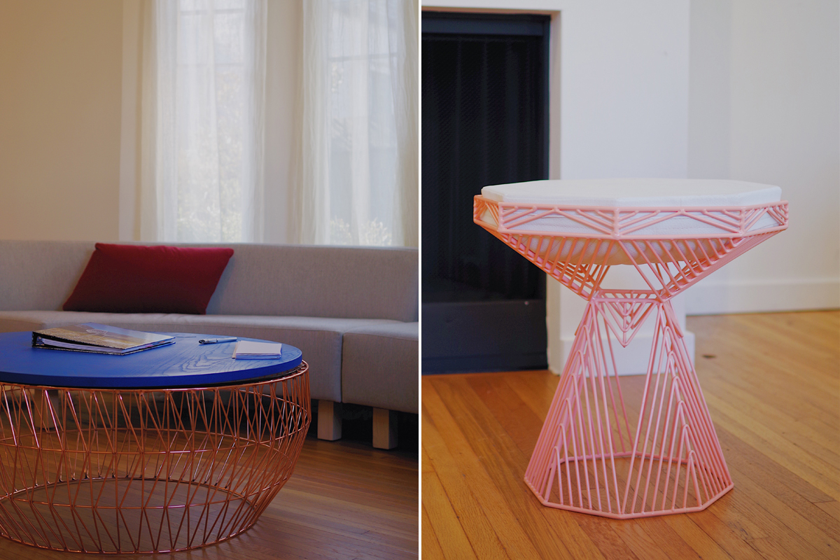 When I started, I started with a couple of chairs and that was it. Then I quickly realized that I wanted to introduce other pieces into the collection. That was the “What more could I do with wire?” thought. I realized that there were endless opportunities: I could make tables, I could make bar stools, I could make accessories. I wanted to be able to explore wire in so many different realms and so many different types of products. There’s so much more! Now it’s become about how we have wire and incorporating other elements like wood and upholstery. How do we incorporate other materials to keep it cool and fresh and new, evolving the whole concept of what we’re doing? We don’t want to be just a chair company or just a wire company, there’s a lot of creativity. It’s not just about designing a piece of furniture, it’s about versatility—and the versatility of wire.