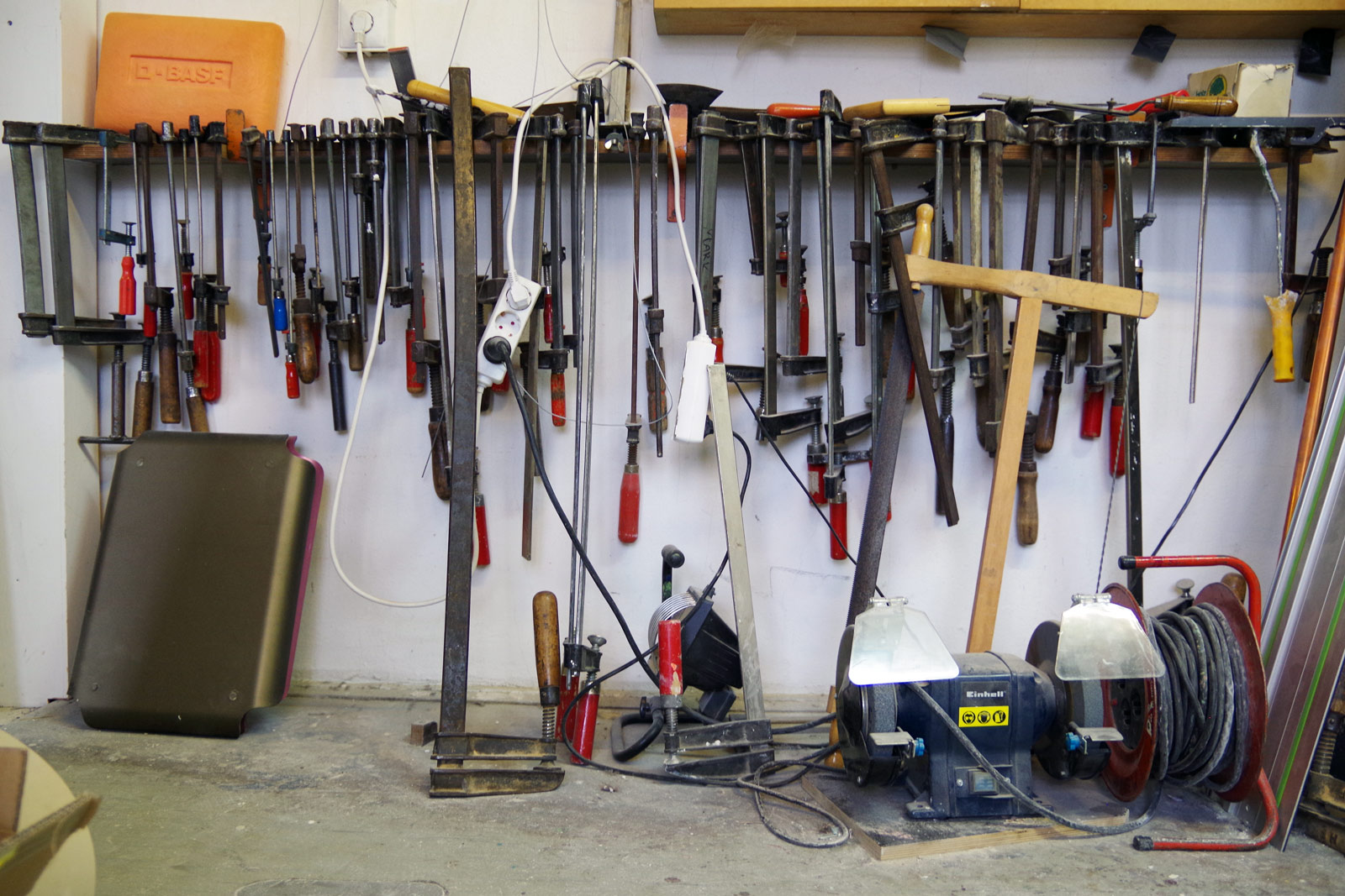 There are 40 other artists working within the same building as Braun. Large windows look out upon drastic development in the plot of land outside—such development almost pushed all of the artists and designers from the neighborhood. The government, however, has secured the space for its residents with a process that’s currently in development. “It was so insecure, whether or not we would have to leave. But when it becomes so, I will maybe take on one more room in the building and remove some of the walls to make everything more open,” Braun explains. It’s quite evident that the three inhabiting the space make the best use of it, despite the substantial amount of projects. “I’d say regarding active projects, there are about four or five,” Braun adds. “And ongoing projects, about 20.” Many projects seem to have their own space within the studio.