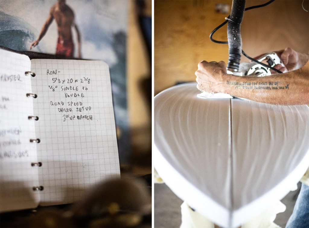 “My path to shaping began as a carpenter when I lived in Virginia, roughly 12 years ago. I was working with a master carpenter at the time and, only a few years earlier, had fallen deeply into an intense affair with surfing,” he explains. “I mentioned I was interested in making a wooden longboard, and the older man got just about as stoked on the project as I was. We did some research, drew up templates, bought the wood, and got to work. I ended up making a 10-foot single-fin log with his help, and through the process, learned how to better use many of the old woodworking tools which would later become integral tools in my shop.”
