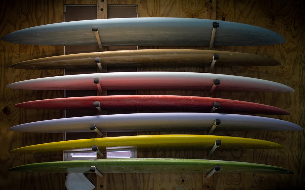 “There’s nothing quite like it,” he says of seeing someone, himself included, hop on a board he’s made. “To see every step of the process through, from raw blank to the polishing compound in the sanding room, then to wax up the new shape and paddle it into waves a few blocks from the studio and my house in Rockaway… There’s a simplicity to this turn around aspect of the business that continues to captivate me year after year.”