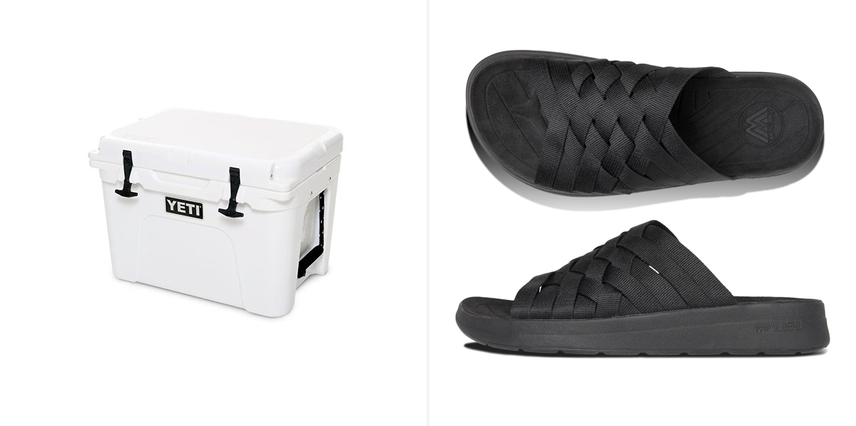 It’s a beach party, once the guests arrive, but there should be time for plenty of pre- and post-dinner swims or surfs. Once in party-mode though, fancy-up your beach look with a pair of all-black Malibu Zuma Sandals ($110) for a functional and stylish final touch.