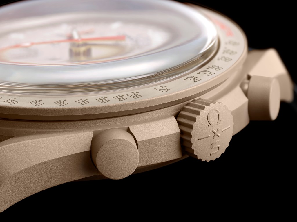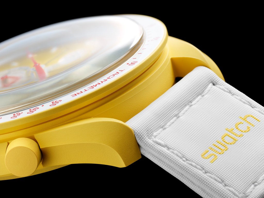 Of course there are differences. “The way the counters are positioned is different because the movement is a Swatch quartz chronograph, but the degrees of finesse in the definition of the elements and the printing of dials is absolutely Omega quality. It became a hand-in-hand project and we at Swatch learned so much from the Omega people,” Giordanetti says. Omega’s design team helped Swatch develop the immense number of details.