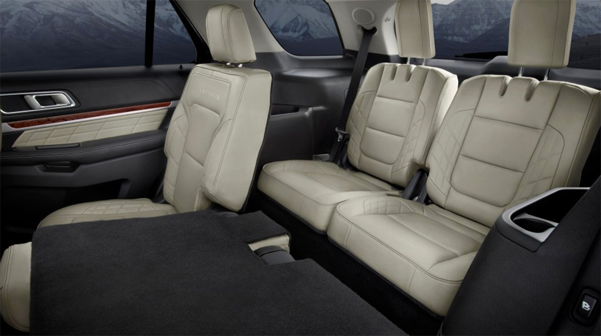 Inside is a refreshed control panel for all trims and a gauge cluster that is a combination of analog and digital, which is viewed through a 10-inch display behind the steering column—a first for a Ford vehicle. Standing out from the crowd, Platinum adds real ash wood and aluminum, and indulgent features such as heated leather and wood steering wheel, and a leather bedecked dashboard and trim accents. With second and third row seats folded, 81.7 cubic feet of cargo space accommodates your gear.