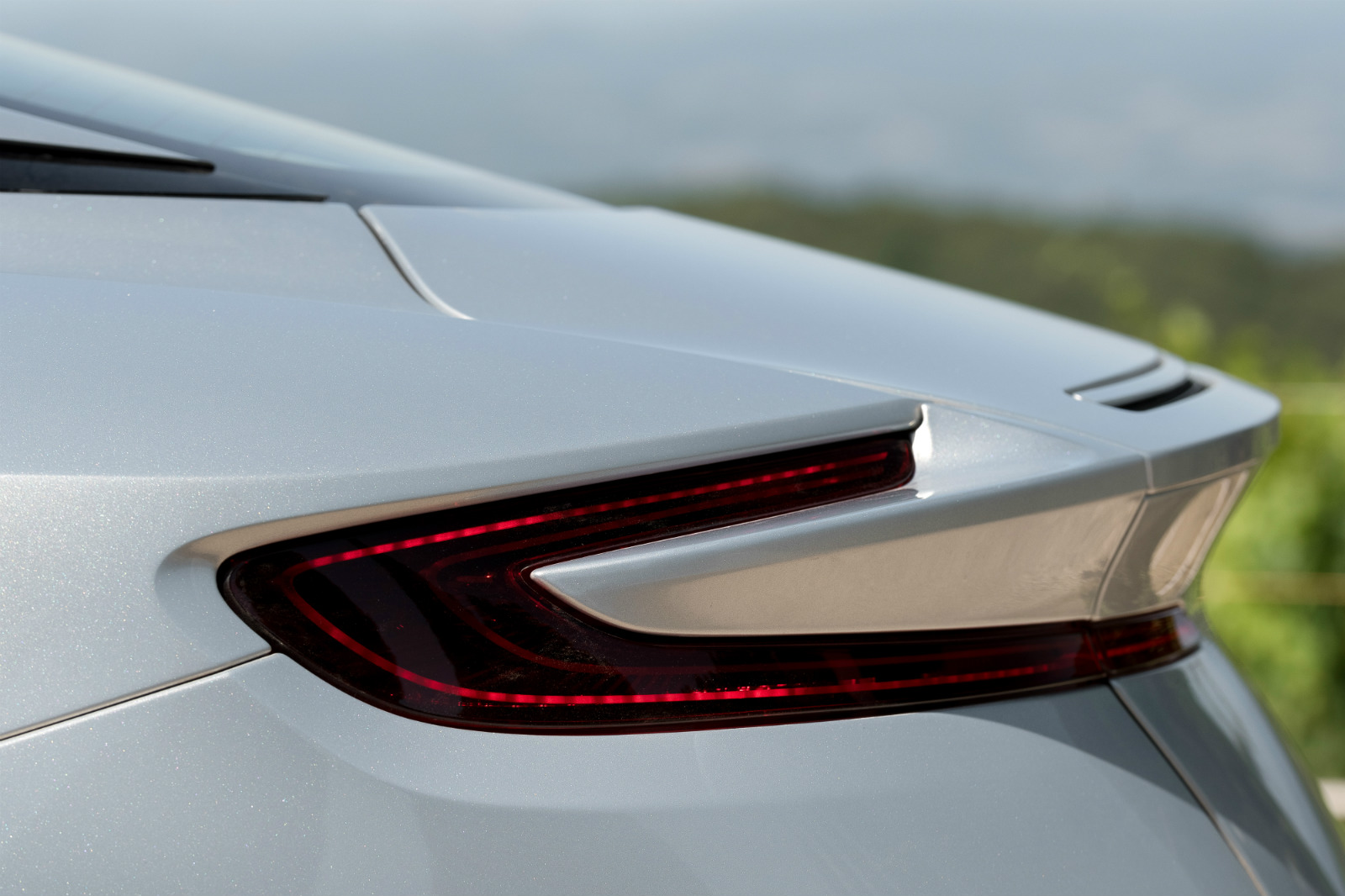 As the early afternoon sun filters through the trees, glancing back in the rearview mirror, we can see the extravagantly sculpted shoulders of the DB11. From every angle, this car is visually entrancing. Get in really close in some places, and there is further detail there too. Like under the front-wheel arches, where a “curlicue” mitigates air turbulence and helps direct flow. It’s aerodynamic details like this—almost invisible—that punctuate a departure from the old Aston. It’s an appreciate for what a grand touring car can be, fully realized, with the backing and enthusiasm of a new regime out to prove that great product is the best business case.